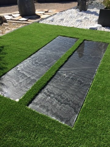 Elles offrent également un contraste élégant entre la minéralité de l’ardoise et la douceur du gazon, tout en soulignant les perspectives et en renforçant l’harmonie de l’ensemble paysager. Les plaques Ignita participent ainsi à créer une ambiance raffinée et résolument actuelle.